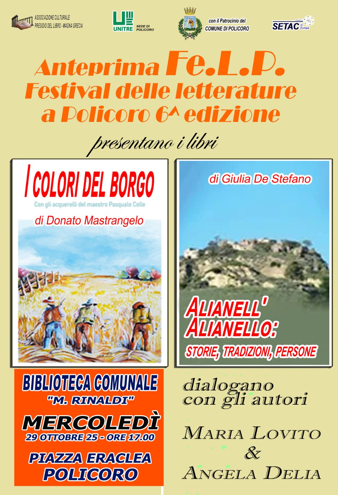 Si comunica che mercoledì 29 ottobre 2025, gli alunni e i docenti del corso serale parteciperanno all’anteprima della sesta edizione del “Fe.l.p – Festival delle Letterature”, che si terrà presso la Biblioteca “M. Rinaldi” di Policoro.